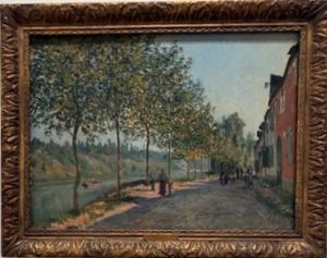 シスレーの作品に描かれているのは川なので水に動きを感じましたが、この「グレーの洗濯場」では、水面に反映している建物の影が動いていないので、沼や大きな池のようなところなのでしょうか。